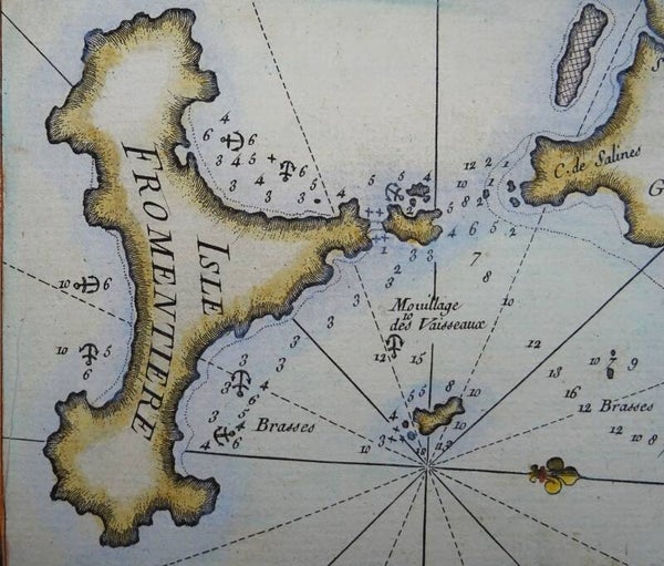 Published in the French work "Recueil des principaux plans des ports et rades de la Mer Mediterranée" (Compendium of the main plans of the ports and roads of the Mediterranean Sea), 1764, Marseille (France).