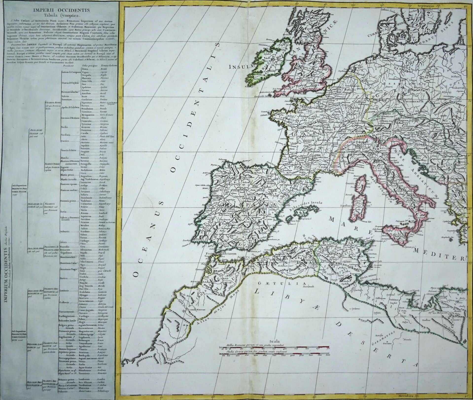 Very large map of Europe and the Middle East, printed on two large folio sized late 18th century copper engraved sheets with an interesting and detailed map of the Roman Empire.