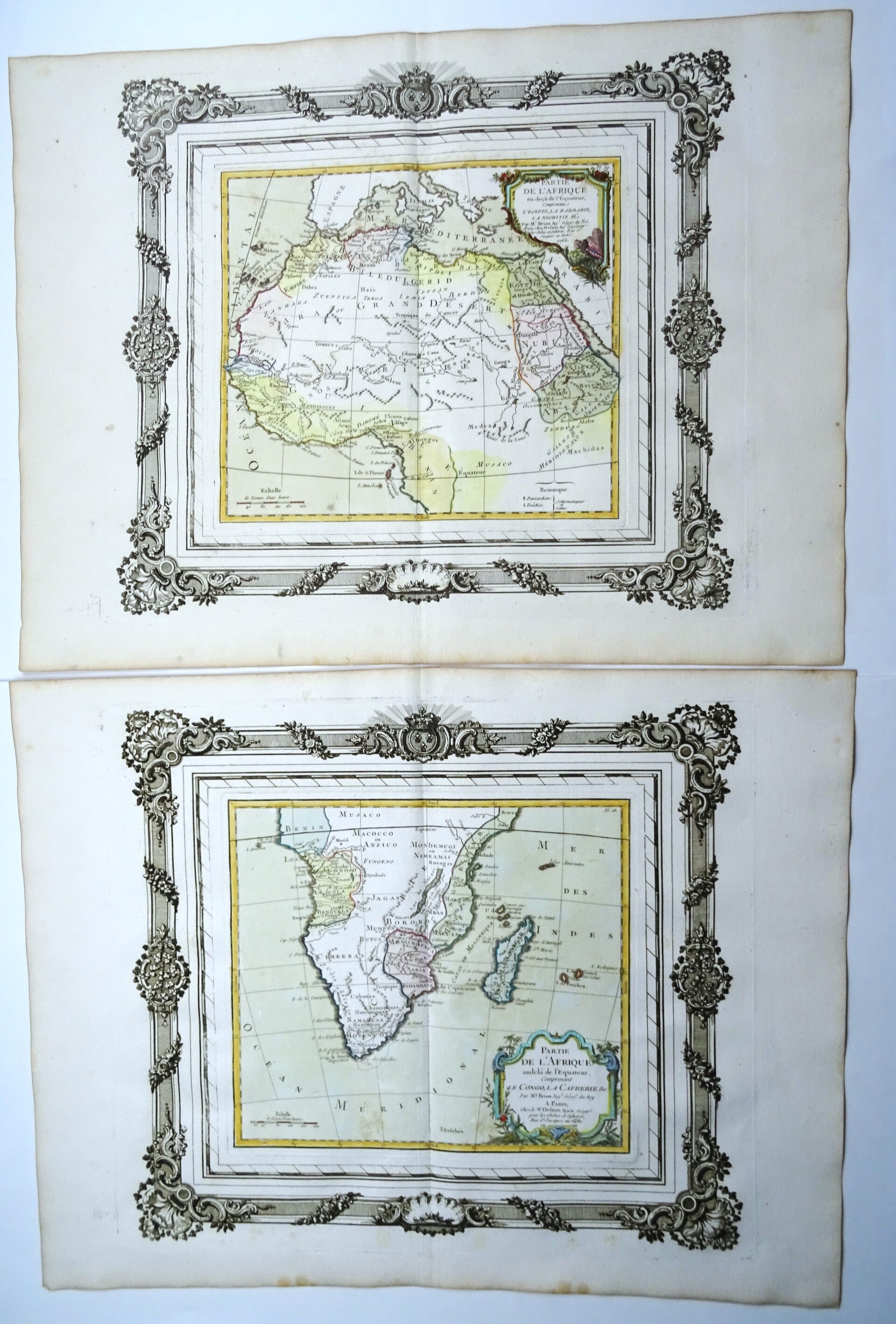 Set of two matching folio sized maps, made by Brion de la Tour, of the North and South of Africa. Decorated with a detailed cartouche. This is the first edition of this famous map.