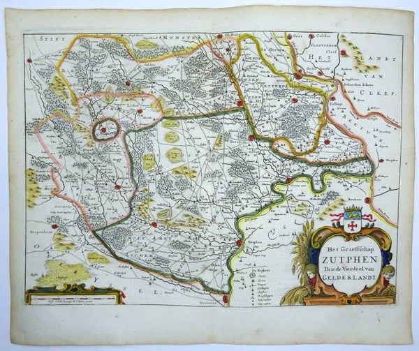 Netherlands, Gelderland, Achterhoek, Doetinchem, Groenlo... Geelkercken, 1654, Het Graeffschap Zutphen. Driede Vierdeel van Gelderlandt.