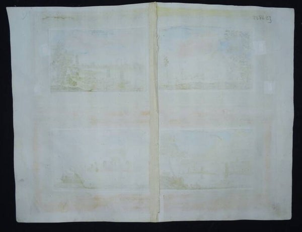 Rare 18th century large copper engraving showing four views of places in China in one very decorative frame: