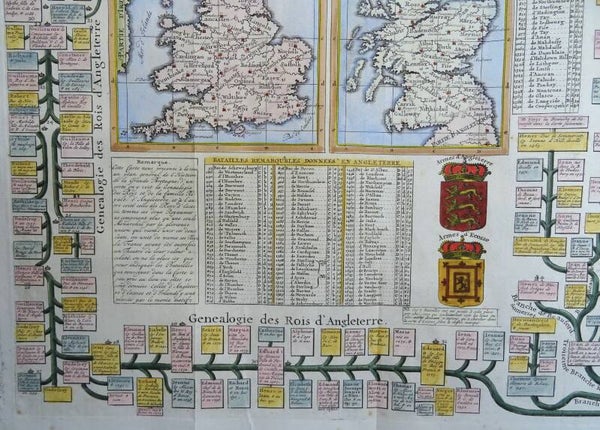 UK, Ireland, France – Kings Chatelain/Guedeville, 1720, Nouvelle Carte Pour Introduire A La Geographie et a la Genealogie Des Rois D'Angleterre et D'Ecosse