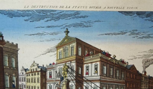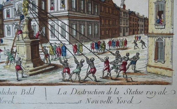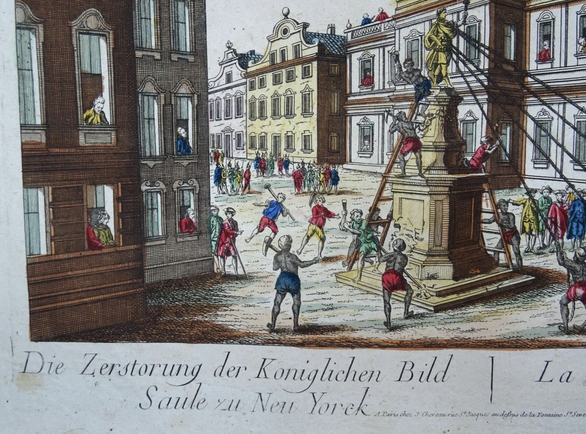United States, New York, Revolution Chereau, 1780, Die Zerstorung der Koniglichen Bild Saule zu Neu Yorck. / La Destruction de la Statue royale a Nouvelle Yorck.