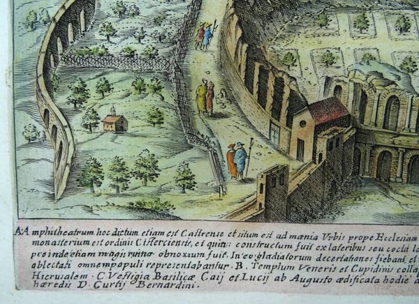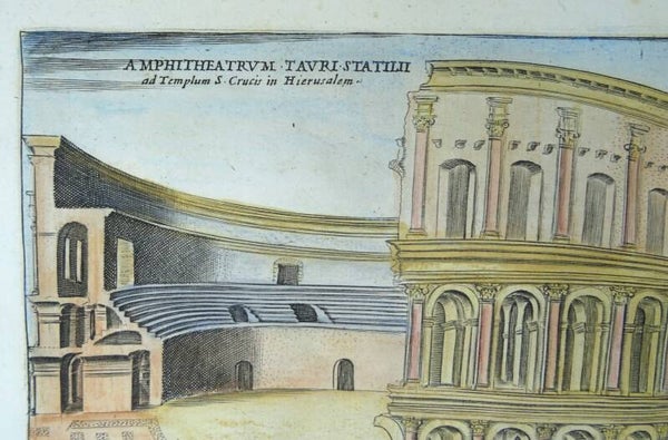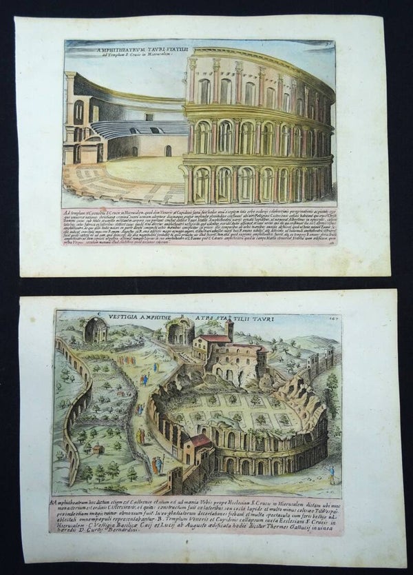 Italy, Rome, Amphitheater, Campus Martius, 2 views Giacomo Lauro, 1625, Vestigia Amphitheatri Statilii Tauri / Amphitheatrum Tauri Statilii ad Templum S. Crucis in Hierusalem