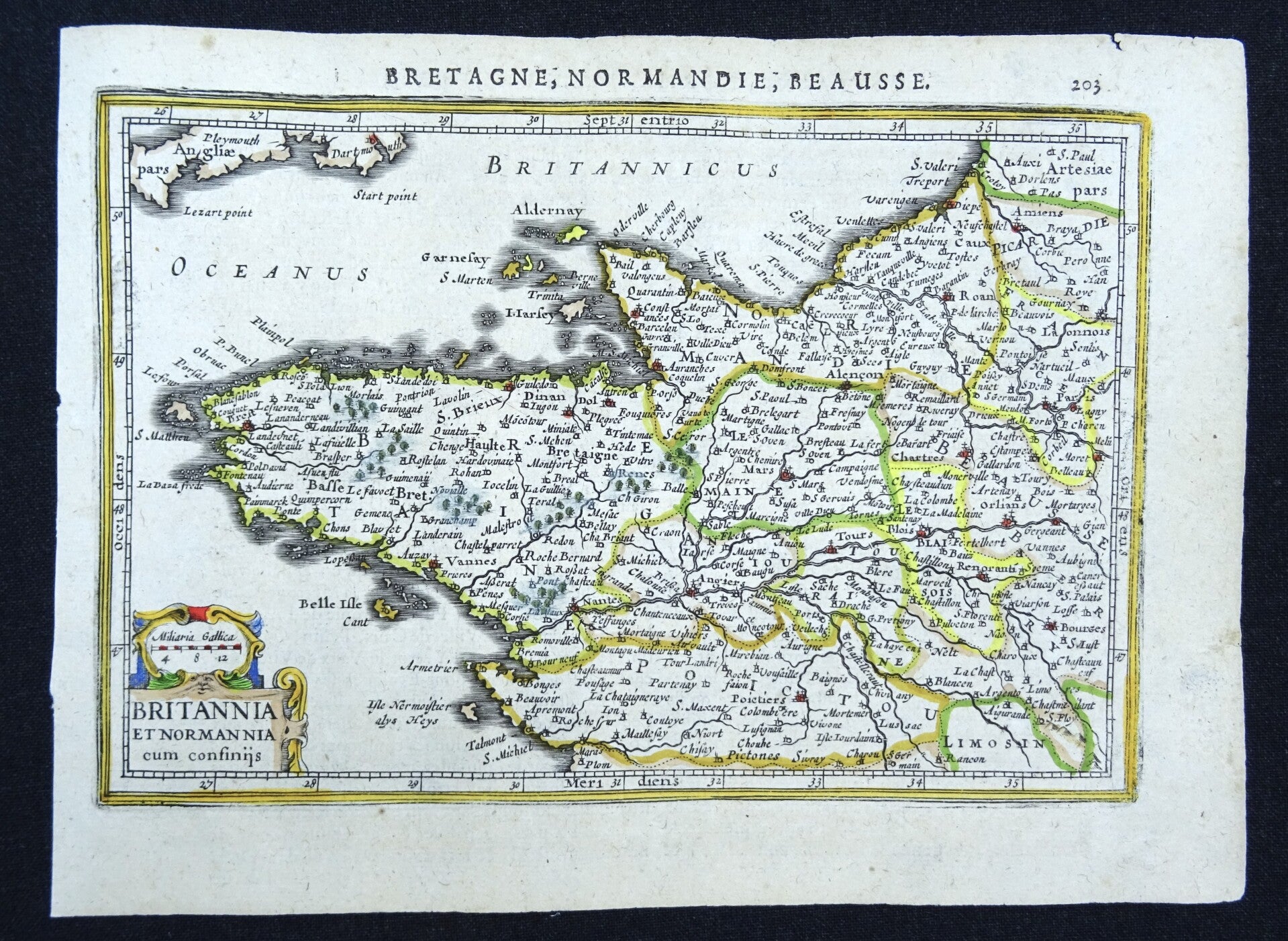 Lovely map by Janssonius (Jansson) of Bretagne and Normandy plus parts of the interior of France until Paris.