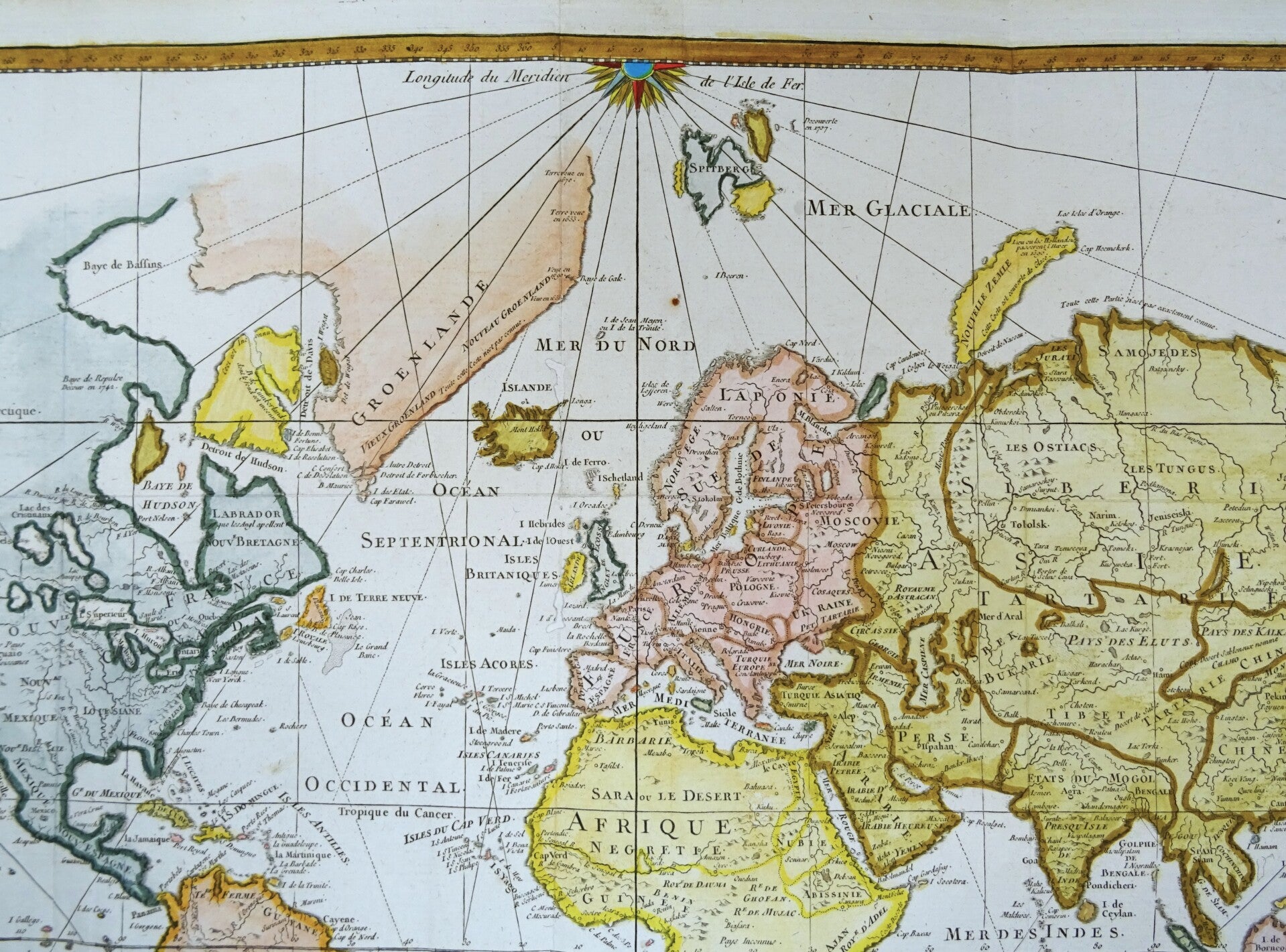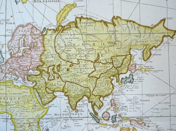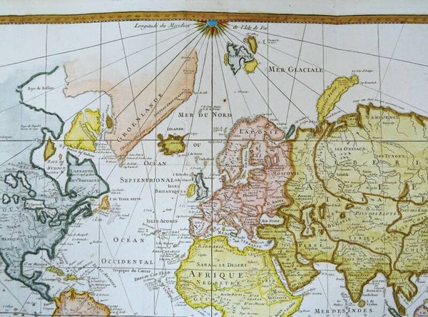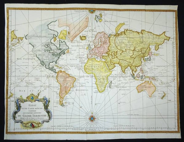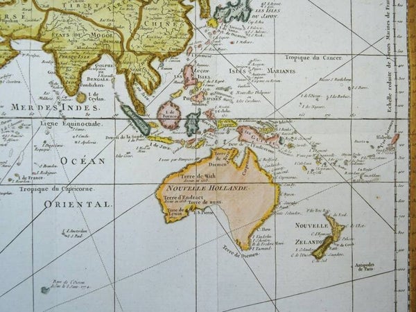 The map was first published in Paris in 1748 by Jacques-Nicolas Bellin (1703-1772). Bellin would periodically update and reissue these maps to reflect the latest discoveries. This last edition also shows many of the discoveries by James Cook near Australia and New Zealand, but not yet the later discoveries of the West Coast of America. This places the map around the late 1770´s.