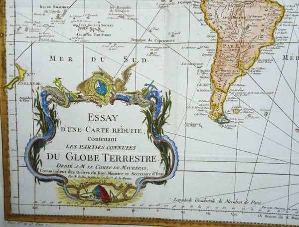 World map, Bellin, 1748/1778, Essay d´une Carte Reduite …Globe Terrestre