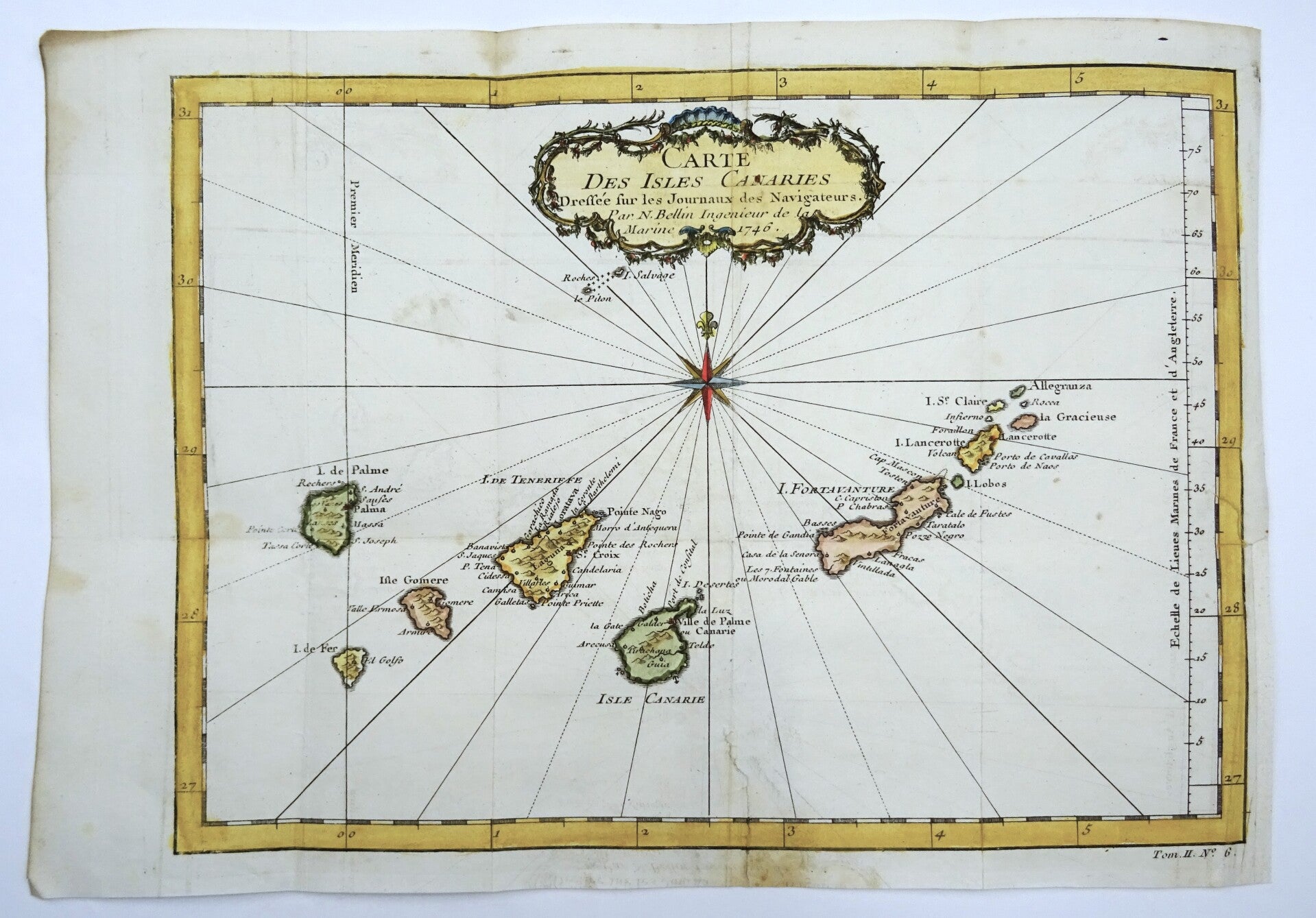 Map by J.N. Bellin of the Canary Islands, published in 1746 in Prevost d´Exiles ´ L'Histoire Generale des Voyages´. Paris.