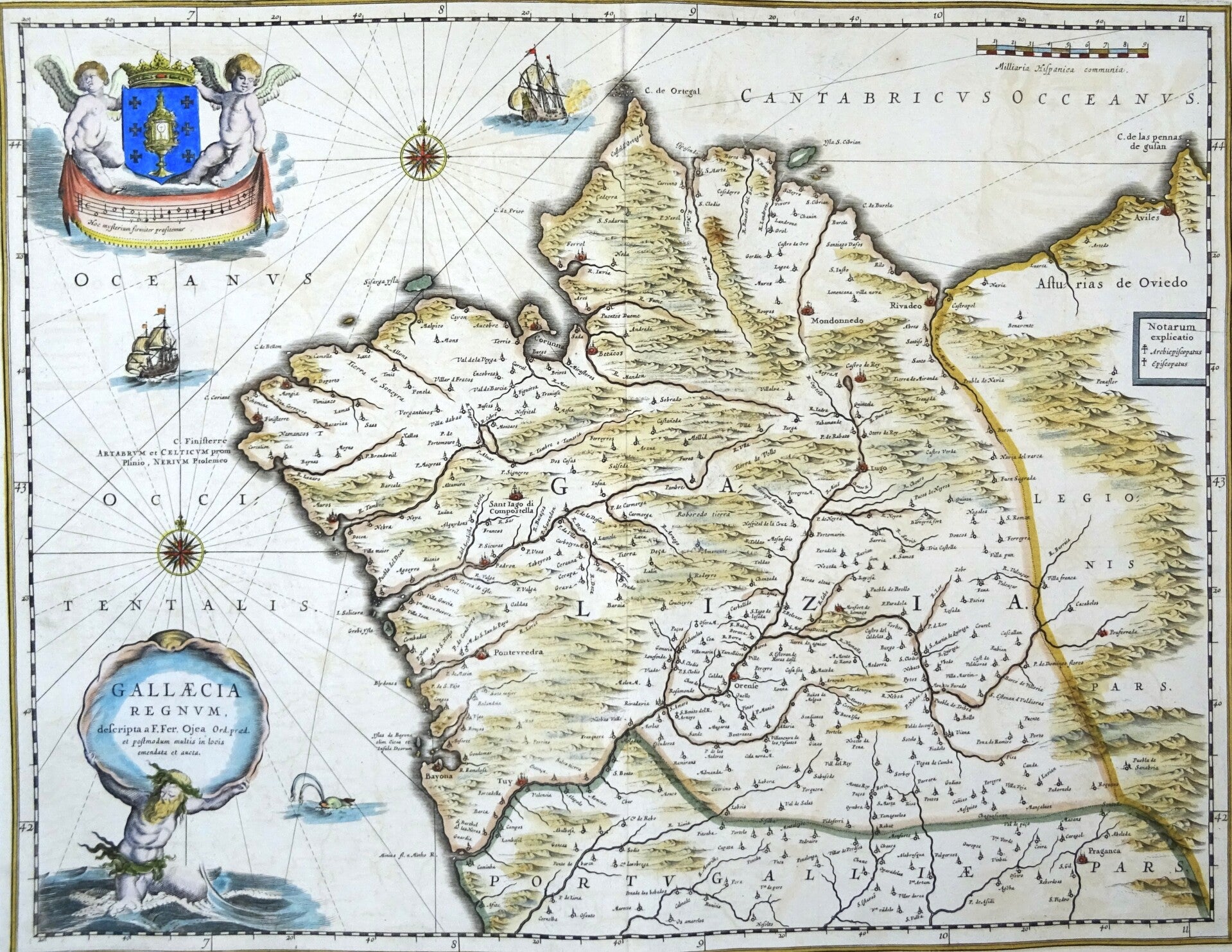 Spain, Galicia, Santiago de Compostela, J. Blaeu, 1661, Gallaecia Regnum