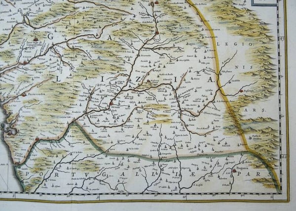 Impressive large folio sized 17th Century map of Galicia, published by J. Blaeu in Amsterdam, around 1661.
