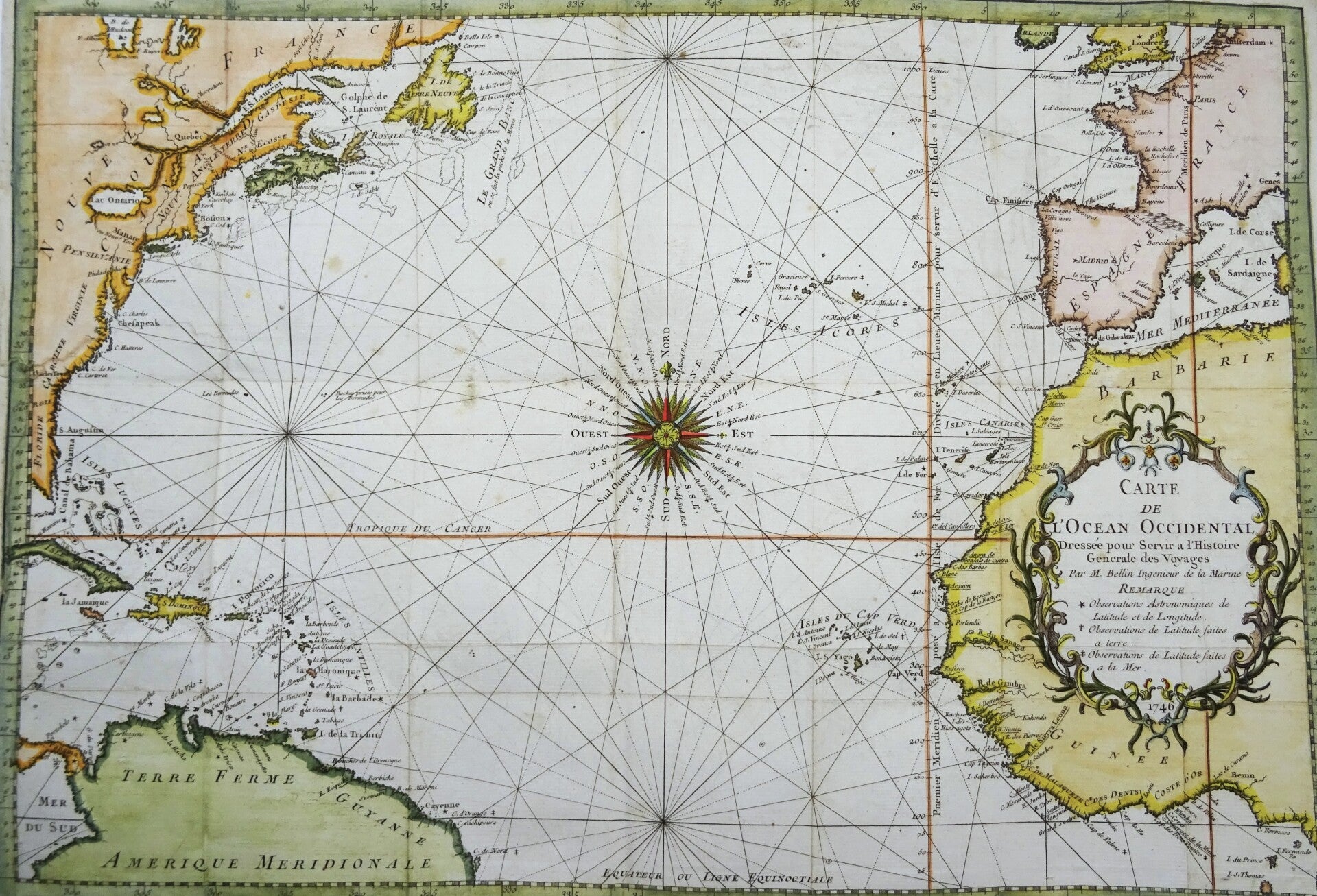 Atlantic Ocean, Africa, America, Europe, USA, Canada… Bellin, 1746, Carte de l´Ocean Occidental…